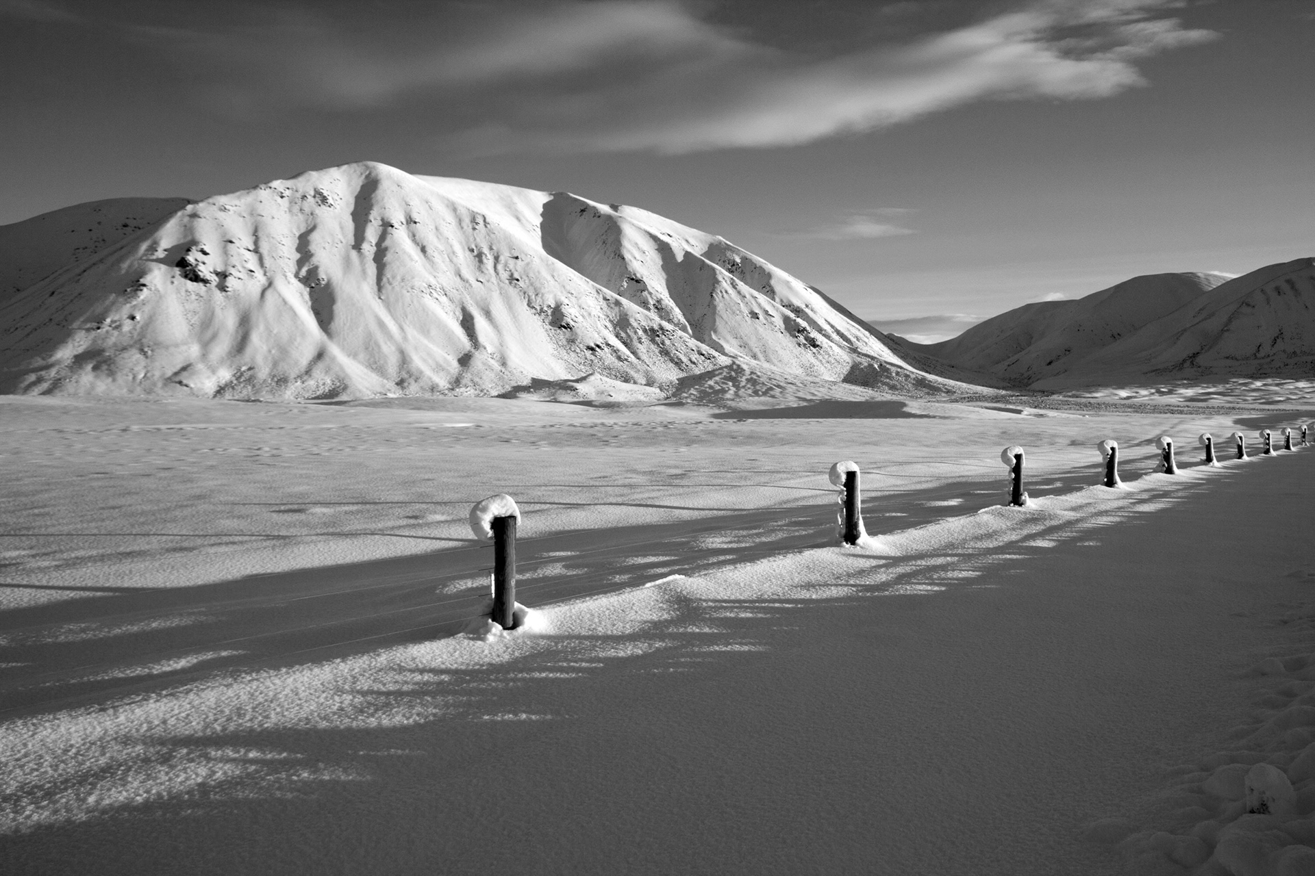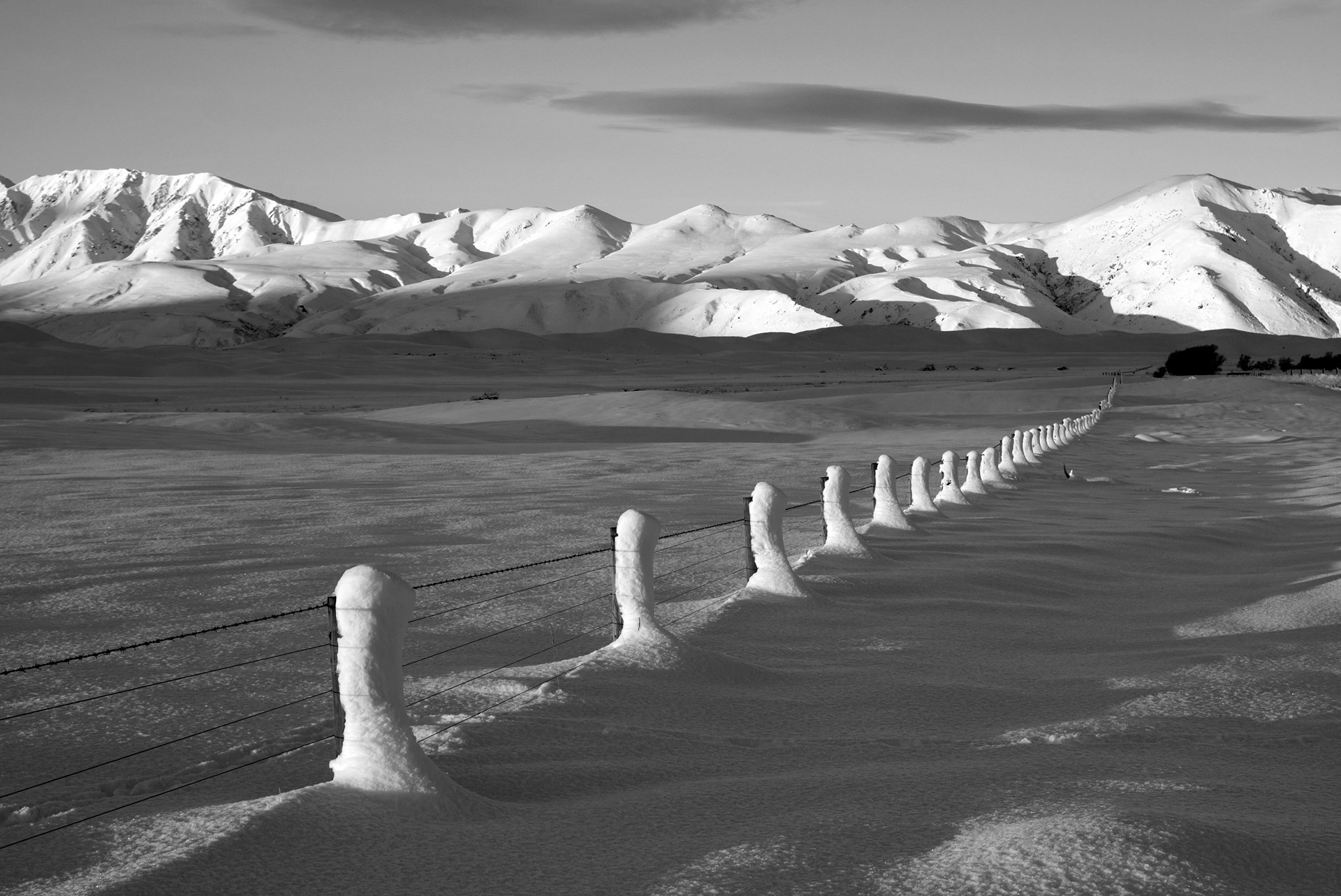 A snowy afternoon around Lake Clearwarer in the Hakatere Conservation Park